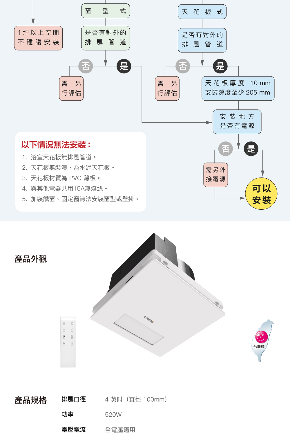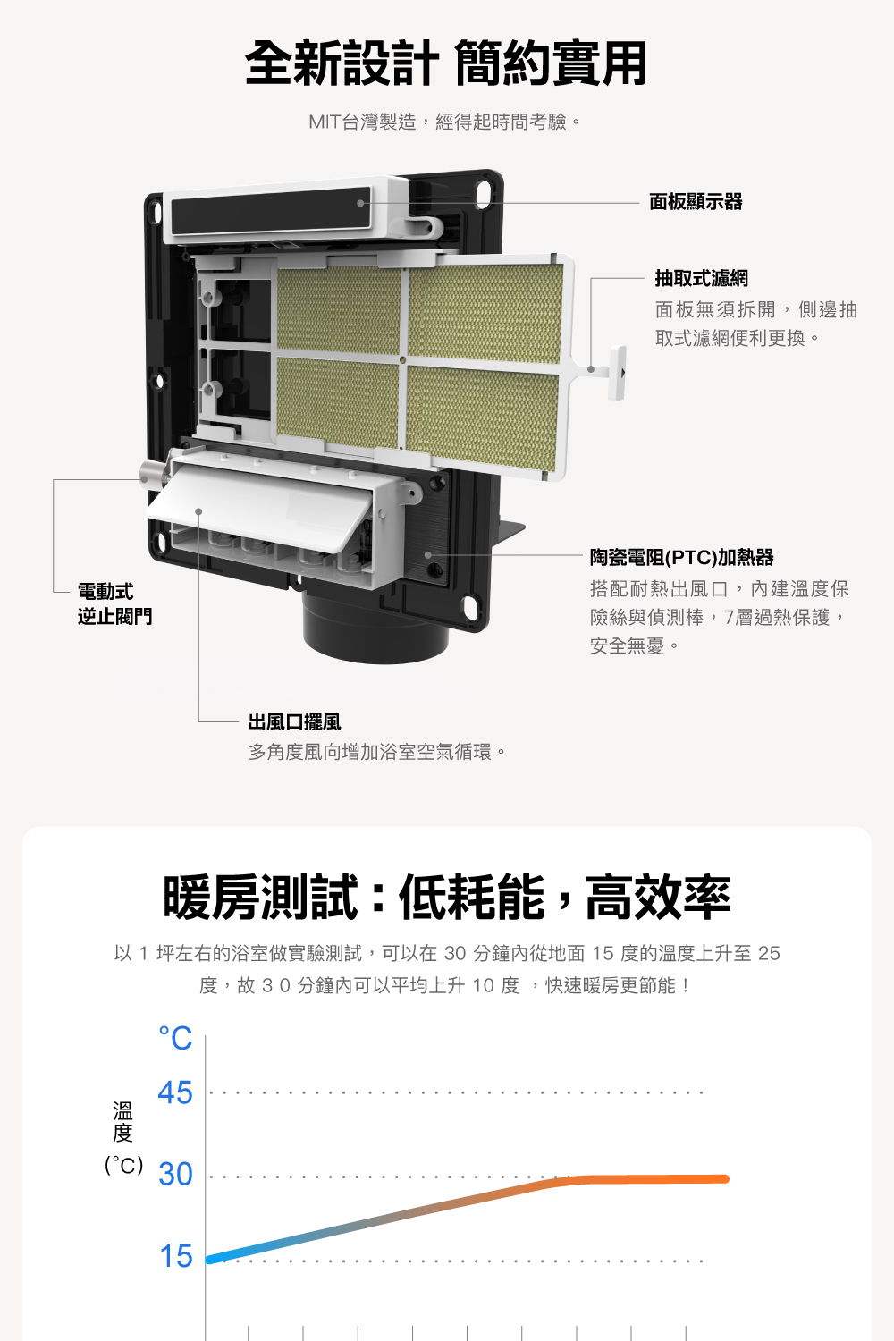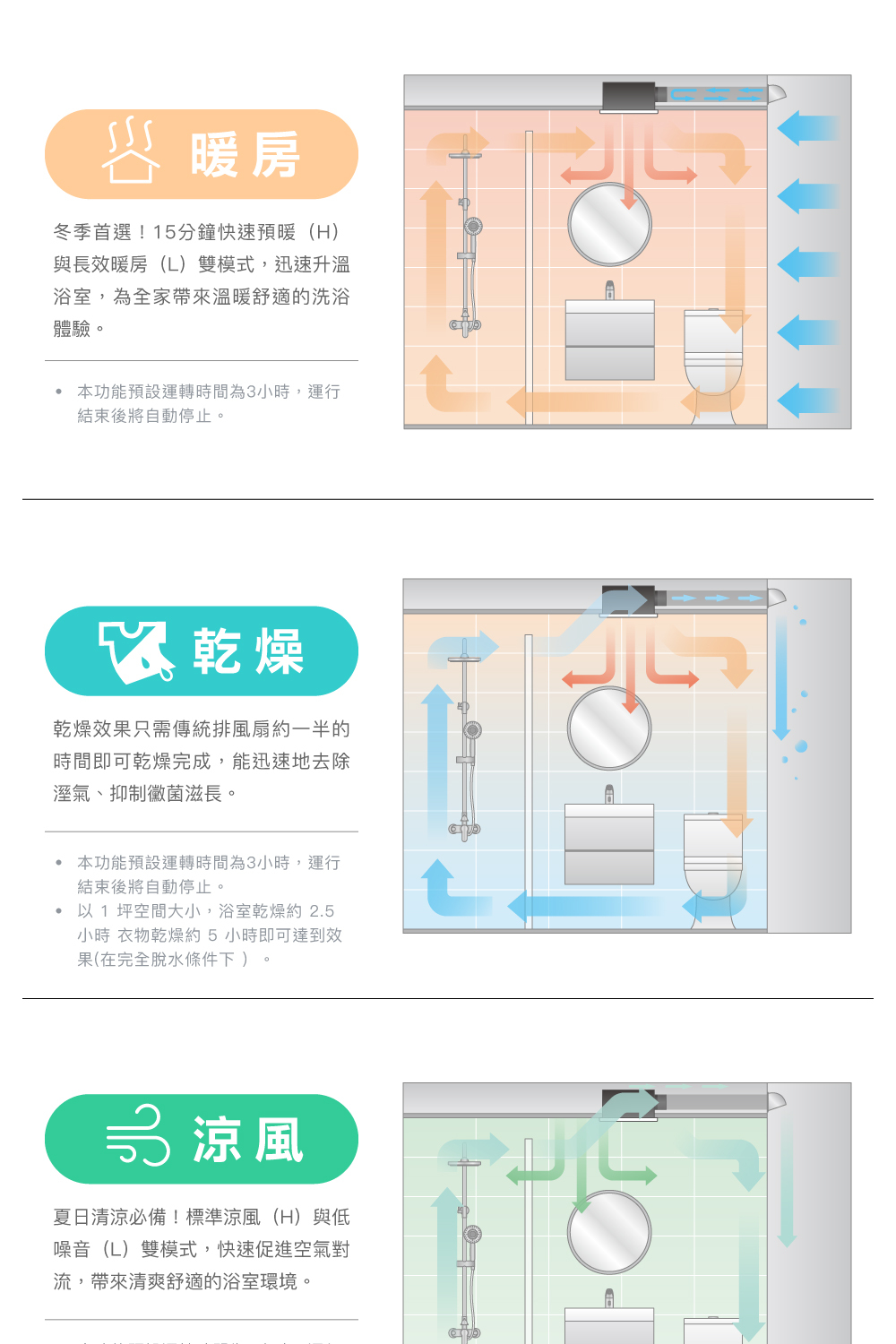 ● 四合一功能:換氣、暖房、 涼風、乾燥。