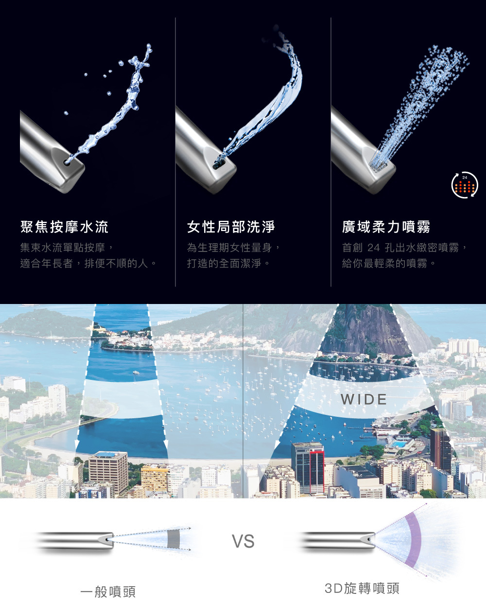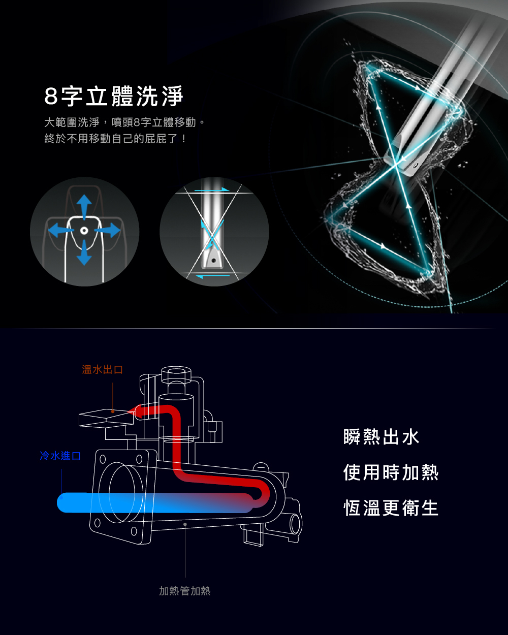 ● 首創 8 字 3D 移動沖洗
