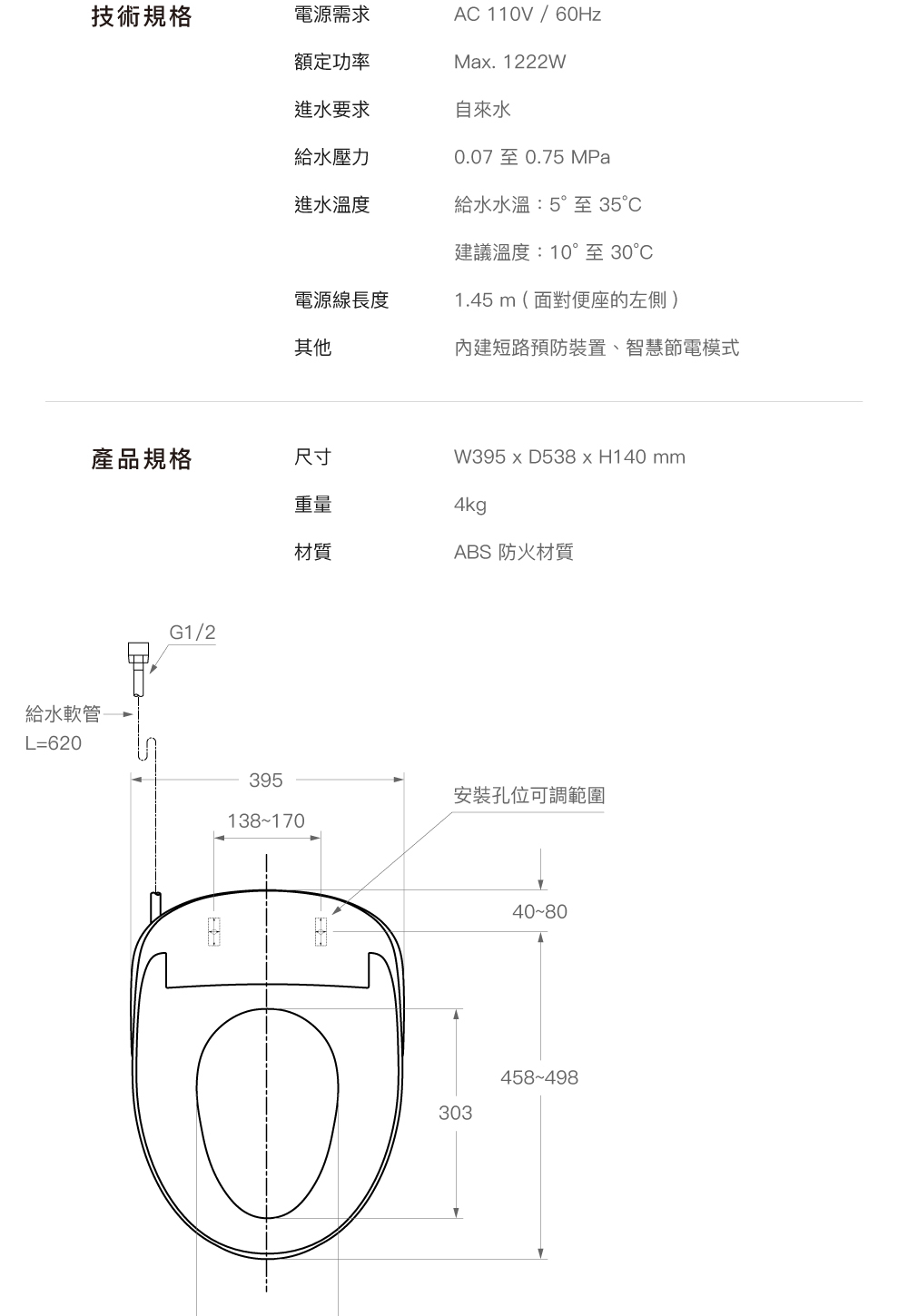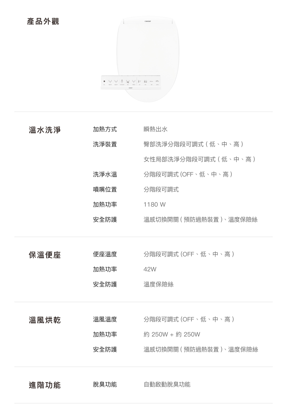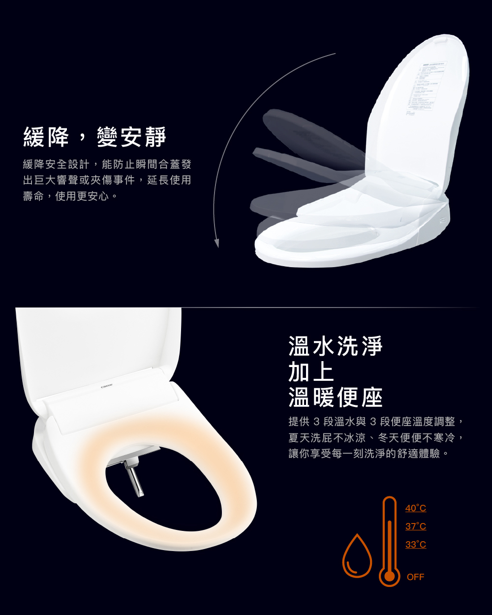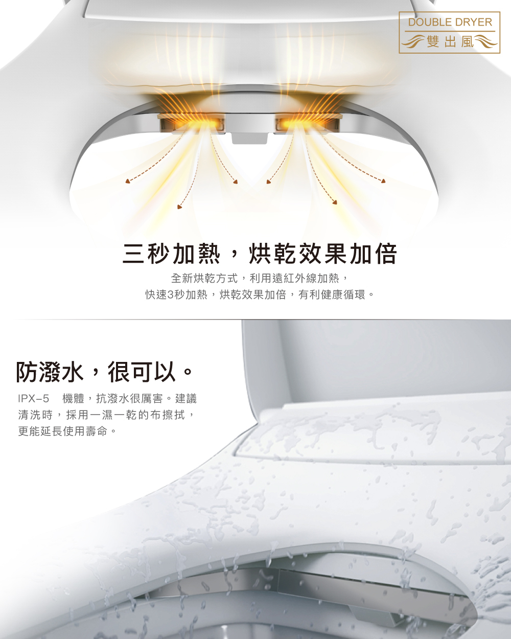 ● 三段座圈溫控、雙暖風出風口