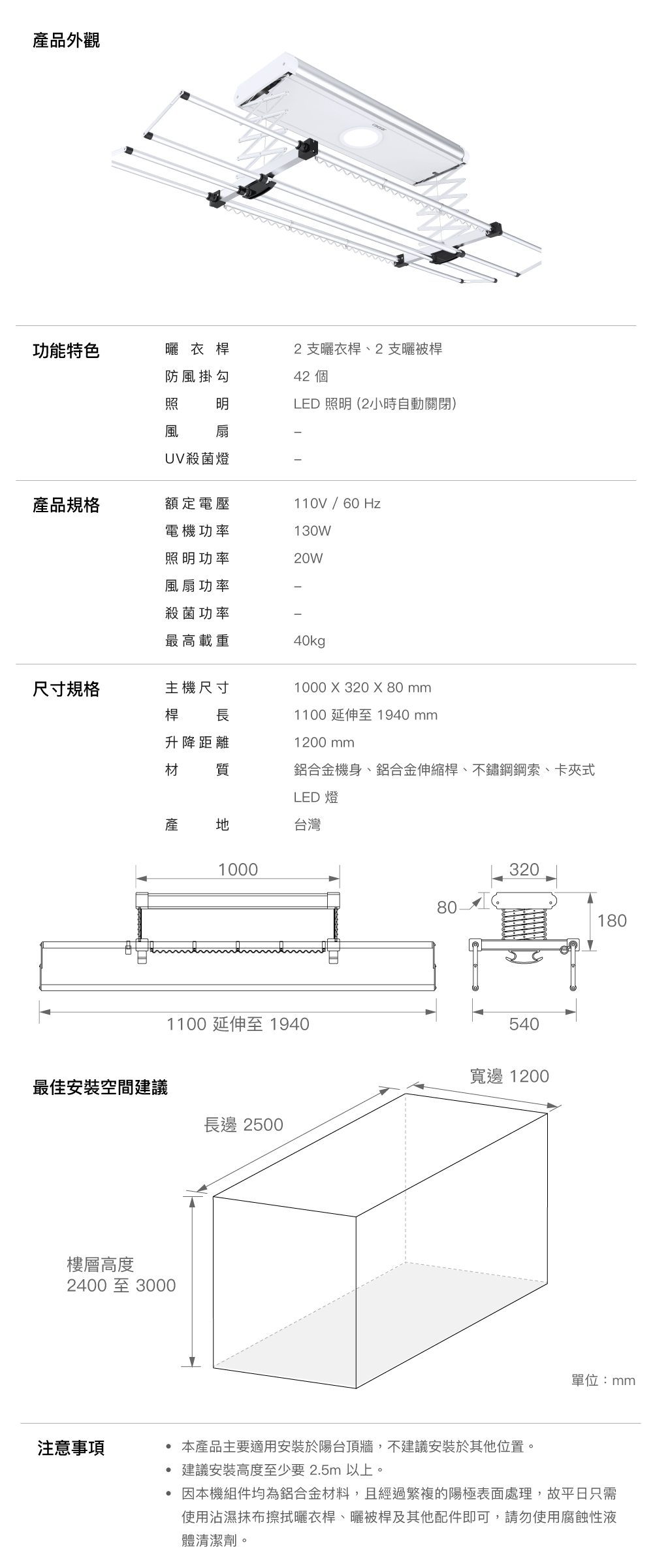 ● 承重40kg,全家衣物一次搞定。
