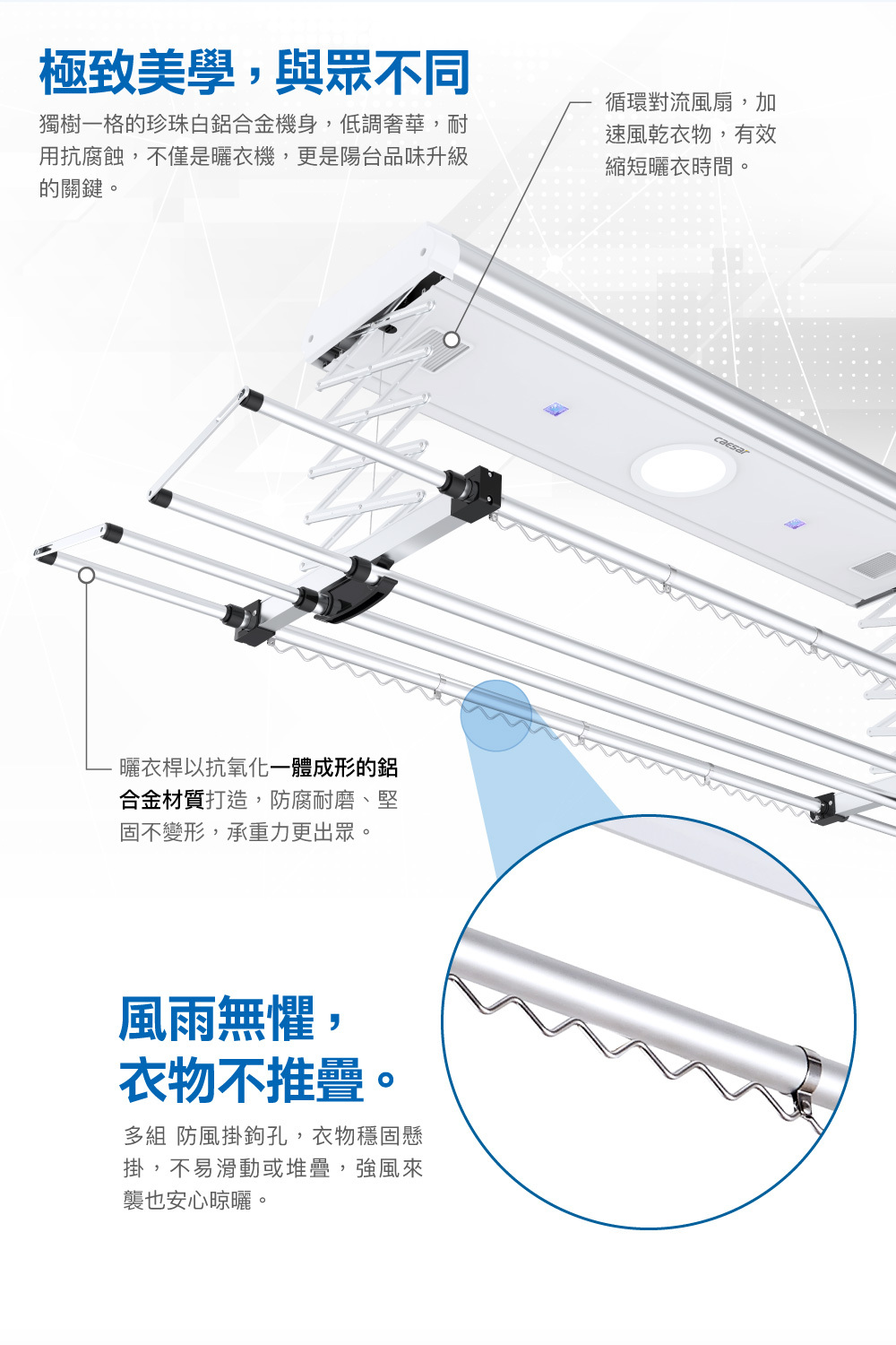 ● 風乾+殺菌功能,一年四季好曬衣