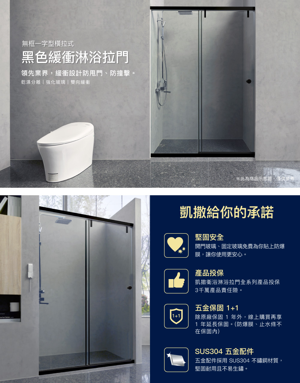 ● 乾濕分離、強化玻璃、靜音緩衝。