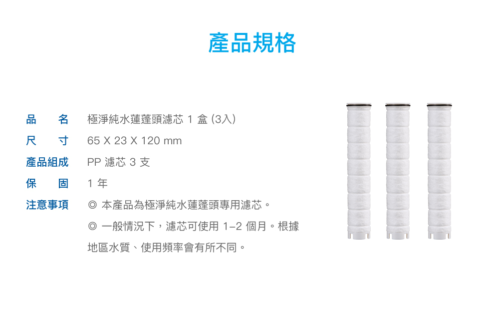 ●極淨純水蓮蓬頭專用濾芯。